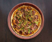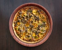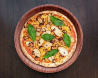 Tomato Base, Vegan Cheese, Sweet Potato, Red Onion, Sweet Corn, BBQ Sauce