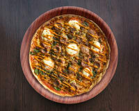 Lamb Sausage, Marscapone, Spinach, Roma Tomato, Harissa Sauce