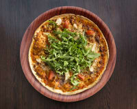 Tomato/Garlic Base, Prawns, Jalapenos, Fetta, Chilli, Baby Rocket