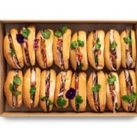 A selection of Vietnamese style buns with our signature fillings. 1 box includes 16 pieces. ● Chipotle Chicken ● Smokey Brisket ● Teriyaki Chicken. *PLEASE NOTE THIS ITEM IS ONLY AVAILABLE FOR ORDER 36 HOURS IN ADVANCE.
