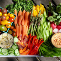 Fresh cut seasonal vegetable with tasty salsa & dips.