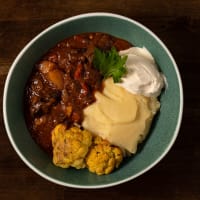 Brown rice with black beans, charred corn, cheese, salsa, cos lettuce, jalapeno, coriander and chipotle sauce, topped with guacamole & sour cream. **Bowl comes without protein. Recommended protein: Smokey beef brisket.