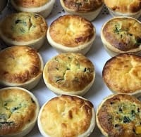 Package includes: ● Freshly percolated coffee, Tea selection, milk and biscuits ● Bottled water & juices ● Plus choose four items from below. Note: Package is all set on the tables with linen, hot food chaffers and iced bucket for the drinks.