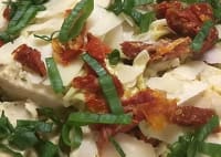 With baby red potatoes, capers, dill, cherry tomatoes, capsicum and veganise sauce.