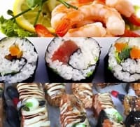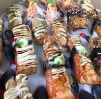 Grilled salmon, Crispy chicken avocado, Tempura vegie, Grilled scallop, Grilled prawn, Spicy crab stick.