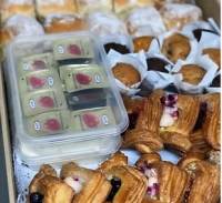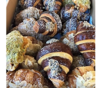 Mini croissants sweet collection boxAlmond, apple crumble, date & walnut, rhubarb, cherry coconut, Nutella.