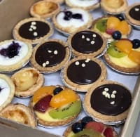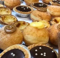 Chocolate tarts, donut balls, fruit tarts, Portuguese tarts, ricotta tarts.