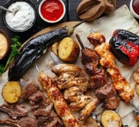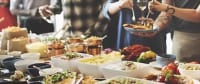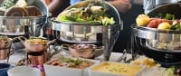 Freshly percolated coffee, Tea selection, milk and biscuits. Package includes: ● 2 gourmet salads ● 3 hot food dishes ● Bread rolls, butter portions ● Delicious Danishes ● Mini tarts collection ● Tray with fresh fruits ● Bottled water & juices. Note: We offer the items in platters (catering boxes) *Note: The supplier has requested a minimum of 30 people.