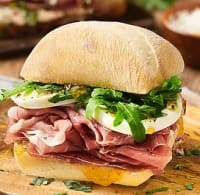 Baby rocket, grilled eggplant, peppers, zucchini, pesto mayo.
