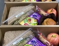 Freshly percolated coffee, Tea selection, milk and biscuits. Package includes: ● Gourmet sandwiches & wraps ● 2 gourmet salads ● 2 hot food dishes ● Bread rolls, butter portions ● Delicious Danishes ● Bottled water & juices. Note: We offer the items in platters (catering boxes)
