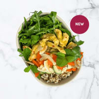 Red quinoa, farro, puy lentils, giant couscous, almonds, pepitas, capers, currants, herbs. Served in a 350ml tub, cutlery not included