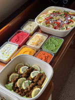 This buffet Includes: • Mixed dips of your choice • Assorted mezze • Falafel VG/DF/GFCig kofte VG/DF • Vine leaves VG/DF/GF • Cabbage rolls VG/DF/GF • Turkish bread VG/DF • Salad of your choice (quantities depending on number of people) • Turkish rice VGTIskender kebab • Mixed grill (chicken, lamb, kofte & cutlets) • Desserts include Baklava or assorted option