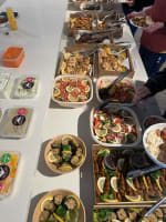 This buffet Includes: • Zucchini fritters with Tzatziki VGT • Pide (VG options available) • Assorted Mezze: ‣ Falafel VG/DF/GF ‣ Cig Kofte VG/DF ‣ Salad of your choice