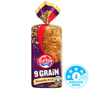 TIP TOP 9 Grain Wholemeal is all about yummy taste with the goodness of whole grains. In fact, one serve contains 65% of your daily target of whole grains^. Every TIP TOP 9 Grain is high in fibre and also low GI for sustained energy.