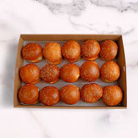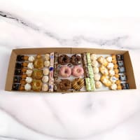 What's inside: 50 pcs. 1) Mini Muffins: ● Blueberry Mini Muffins ● Apple & Rhubarb Crumble Mini Muffins 2) Mini Doughnuts: ● Mini Doughnuts with Pink Chocolate & Yellow Sprinkles ● Mini Doughnuts with White Chocolate & Coconut 3) Brownies: ● Raspberry White Chocolate Ganache Brownies ● Hazelnut Nutella Brownies ● Classic Chocolate Brownies with Ganache & Dried Raspberries ● Danish Pastries & Tarts ● Maple & Pecan Danishes (6)● Miniature Lemon Meringue Tarts● Cinnamon Scroll Danishes