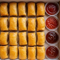 This Platter includes (20) Gourmet Sausage Rolls with Taomoto Relish 1 and Bbq Sauce