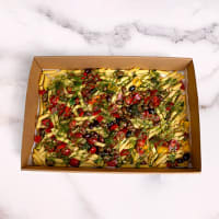 The Chefs Selection Sweet Treat Platter offers a variety of delicious desserts, ideal for corporate events and meetings. What's inside: ● Hazelnut & Chocolate Ganache Tart (GF/N) (4) ● Lemon & Raspberry White Chocolate Ganache (GF) (4) ● Dark Chocolate & Almond Brownie (GF) (4) ● Caramelized White Chocolate & Toasted Coconut (V) (2) ● Milk Chocolate & Toffee Hazelnut with a dark chocolate core (V/N) (4) ● Mixed Berry & Pistachio White Chocolate Bark (V) (2) ● Mini Cupcake: Lemon & Elderflower with Buttercream Frosting (V) (6) ● Mini Cupcake: Raspberry & Rose with Buttercream Frosting (V) ● Spiced Pear & Almond Frangipane Tart (N) (5) ● Chocolate Hazelnut Tiramisu Tart (5) ● Citrus & Blueberry Tart (5) ● Dark Chocolate & Salted Caramel Tart (5) ● Lime & Coconut Meringue Tart (5)