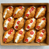 This Platter Includes 12 Double Smoked Ham And Swiss Cheese and Tomato Cultured Butter Croissants Platter