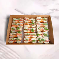 What's inside:- Per Person, with a Minimum Order of 10 People- Prawns, Fresh Mozzarella, Cherry Tomatoes, Pesto, Rocket, Basil Leaves, Sweet Chili Jam