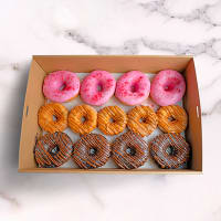 Our Signature Doughnut Platter offers a variety of premium doughnuts, perfect for corporate events and easy to serve. Platter includes ● Dark Chocolate with Nutella Doughnut (4) ● Salted Caramel Doughnut 4 (●) White Choclate and Raspberry with freez dried raspberry (4)