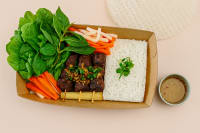 Woven noodles served with lettuce, mint leaves, pickled carrots & daikon. Also includes: • (3) Chargrilled Pork Skewers • (3) Lemongrass Beef Skewers • (3) Lemongrass Chicken Skewers (Serves 3)