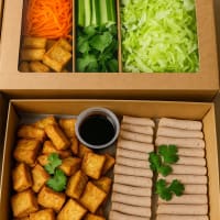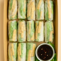 Includes: • (10) Chicken Spring Rolls: Chicken, carrot & black mushroom and served with seasoned fish sauce • (10) Crispy Tofu Spring Rolls: Mung bean, black mushroom, carrot, sweet potato, radish and served with seasoned vegan soy sauce. Served with seasoned fish sauce unless otherwise indicated.