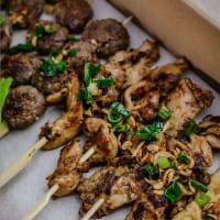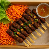 Includes: • (4) Lemongrass Chicken Skewers: Marinated with house-made sautéed lemongrass sauce • (4) Lemongrass Beef Skewers: Marinated with sautéed house lemongrass sauce • (4) Chargrilled Pork (Nem Nuong) Skewers: House marinated and served with fresh mint leaves, pickled carrots & daikon. Served with seasoned fish sauce unless otherwise indicated.