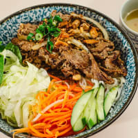 Vermicelli noodles, lemongrass beef, lettuce, fresh mint served with seasoned fish sauce.