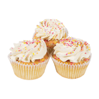 Moist butter cake dotted with hundreds and thousands and topped with vanilla frosting and more hundreds and thousands.