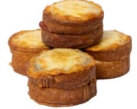 Butter shortcrust pastry filled with braised boneless chicken thigh, caramelised leeks, mushrooms and creamy chicken veloute sauce topped with flaky butter puff pastry baked until golden perfection.