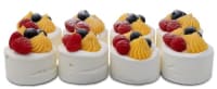 Butter shortbread tart shell filled with whipped creamy passionfruit curd topped with marshmallow and zesty passionfruit jelly.