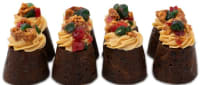 Our family secret boozy plum pudding topped with caramel brandy ganache & crunchy nut clusters.