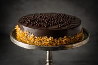 Ingredients: Almond meal, Butter, Whole egg, Hazelnuts, Castor Sugar, Icing sugar, Cream, Dark chocolate, Chocolate glaze, Chocolate crispearls, Gelatin (halal), Gianduja (hazelnut flavoured chocolate), Biscuit crumb. 8 inch (up to 14 servings)