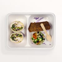 Roll with seasonal greens and your choice of protein, brown rice salad pot & muffin.