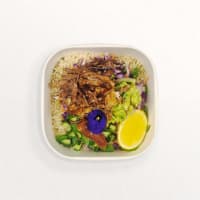 Bbq pulled beef, smashed avo, tomato & cucumber salsa served on a base of brown rice and rainbow slaw.