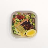 Grilled salmon fillet topped sweet sesame & garlic sauce, diced tomato, diced cucumber and avocado.