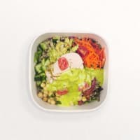 Carrot, cucumber, chickpeas, avocado, shredded free range chicken with green goddess dressing.