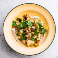 Ingredients: Fried cauliflower, burnt grape, green labneh, toasted almonds, parsley, lemon vinaigrette. **Note: We require a minimum lead time of 4 business days.