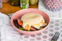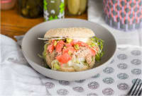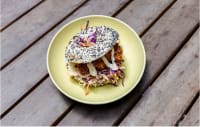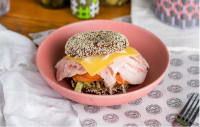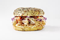 • 4 x Free-range smoked chicken, tarragon mayonnaise, capers & pickled carrots on a sesame bagel • 4 x Slow-braised pork with harissa slaw, tonkatsu sauce & caramelised onion on a seedy-grain bagel • 4 x Pastrami with house piccalilli, dijon mustard, tasty cheese & sauerkraut on a rye bagel • 4 x Home-made turkey breast, fresh avocado, watercress, pickled red onion on a sesame bagel