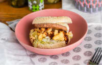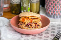 Slow-braised pulled pork, harissa slaw, tonkatsu sauce, caramelised onion on seedy grain
