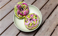 Smashed avocado, pickled red onion, capers & lemon on seedy grain