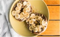 Blueberry bagel, nutella hazelnut, banana slices, almond flakes