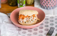 Free-range smoked chicken, tarragon mayo, capers, white pickled onion, pickled carrot on sesame