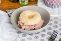 Shaved double smoked leg ham, dijon mustard, kewpie, melted cheese on sesame