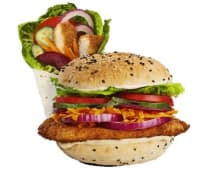 Schnitzel, Tasty Cheese, Baby Cos Lettuce, Tomato, Spanish Onion & Original Mayonnaise.