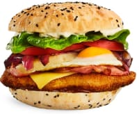 Schnitzel, Tasty Cheese, Rindless Bacon, Beetroot, Cage Free Egg & Bbq Relish.