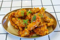 Korean Fried Chicken with Honey Soy sauce. (Halal, Contains: sesame, seafood, and egg)