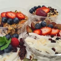 Layers of Blue Mountains granola & sweetened yoghurt topped with fresh seasonal berries. (Packed in 235ml bowl)