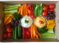 Perfectly refreshing French cut cucumber, carrot & celery w/ cherry tomatoes, olives & dips.