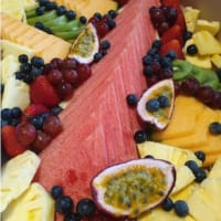 Our fruit boxes include: watermelon, rock melon, strawberries, pineapple, kiwi fruit, grapes, blueberries & passionfruit.